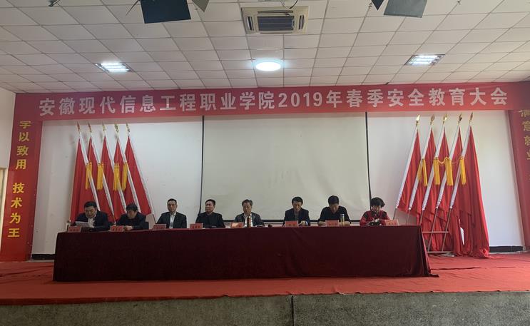 4月24日下午,安徽现代信息工程职业学院在学院多功能报告厅召开2019年春季安全教育大会,学院董事会、党委、行政领导班子成员、全体教职工、学生干部和学生代表参加会议,学院党委副书记杜玉萍主持会议。
