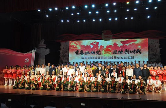 为纪念‘五四’运动100周年,结合我校丰富多彩的生活,培养学生的爱国情怀,2019年5月4日,我校2018级文理学院高铁专业学生积极参与我市举办的纪念‘五四’运动100周年文艺汇演。