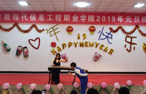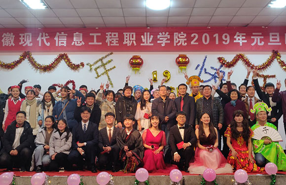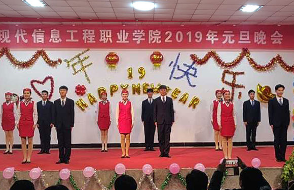 浓墨溢彩印春色,旦暮青云兆丰年。12月25日晚,安徽现代信息工程职业学院2019年元旦文艺晚会暨优秀学生表彰大会在学院大学生活动中心举行。学院督导专员、党委书记张中和,执行董事曹学华,党委副书记、院长魏捷,董事会董事、副院长孙以淳,党委副书记杜玉萍,院长助理、院办主任李景乐,党委委员、党办主任张慧敏以及各系(部)、处室负责人与全院师生一起观看了这场视听盛宴。