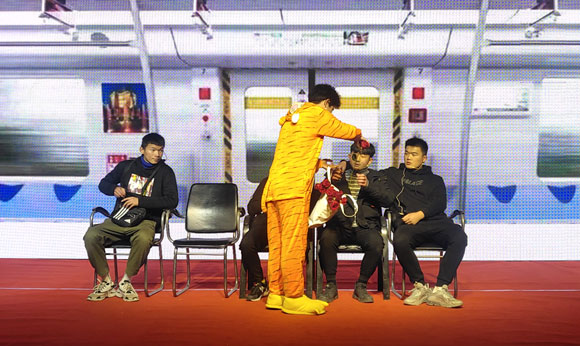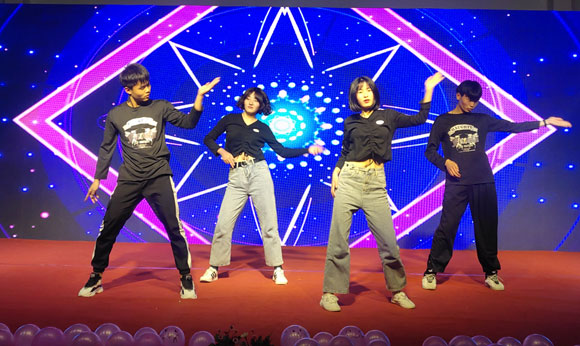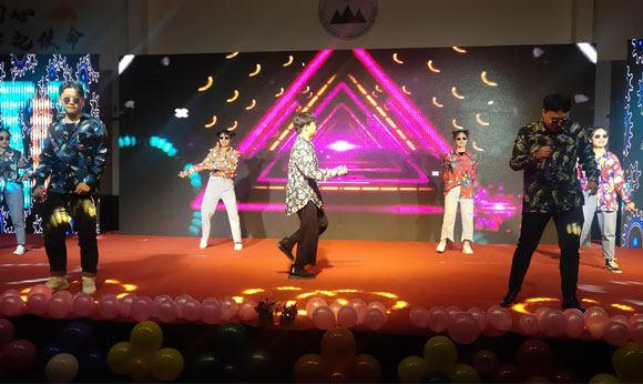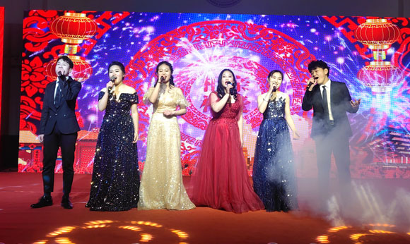 随后,台下灯光渐暗,喜庆而欢快的音乐声骤然响起,开场舞拉开了晚会的序幕,充满热血的表演瞬间点燃了全场的气氛。歌曲、舞蹈、朗诵、小品等20个形式多样、精彩纷呈的节目赢得了观众们热烈的掌声与阵阵喝彩,为观众呈现了丰富的视听盛宴。