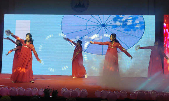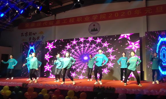 流光溢彩,鼓乐齐鸣,欢歌笑语,辞旧迎新。12月26日,安徽现代信息工程职业学院“2020年元旦晚会暨表彰大会”在全院师生的共同期待中隆重举行。全院2000余名师生欢聚在大学生活动中心欣赏文艺表演,共同庆祝新年的到来。大学生活动中心内歌舞欢腾,处处洋溢着节日的欢愉气氛。党委书记张中和、董事长曹学华、院长魏捷、副院长孙以淳、蔡泉、李景乐、组织部长张慧敏、院办主任朱兆林及全体辅导员、教师出席晚会。