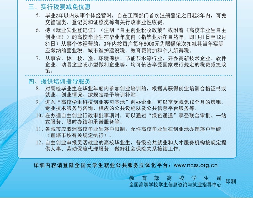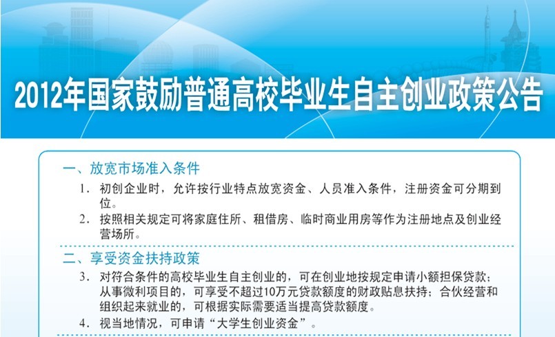 2012年国家鼓励高校毕业生自主创业政策公告