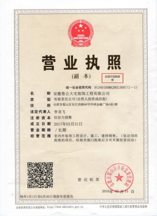 公司简介: 鲁公大宅装饰是2016年进驻合肥市场,设计和施工双乙级资质,是合肥地区规模较大的一家集设计、施工、建材服务为一体的专业化品牌公司。在西安、太原、武汉、重庆、成都、南宁、南京、郑州、南昌、兰州、贵阳、济南等12个大中型城市成立了35家直营分公司,是一家集家居产品的研发,生产,销售服务的多元化企业。鲁公大宅装饰在合肥设置了1个6000平米的家居体验馆。在合肥地区率先采用了精装套餐的计费模式,深受广大人民的好评。