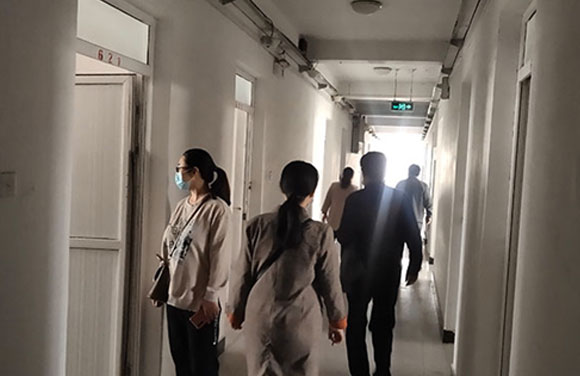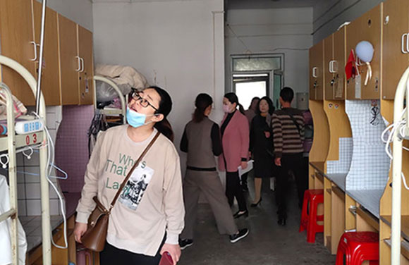 在检查过程中,秉承着以人为本的思想,院领导以及主任们仔细检查了每一个寝室,对寝室的闪光点给予肯定,同时,对不足之处也提出了详细的改进方法。