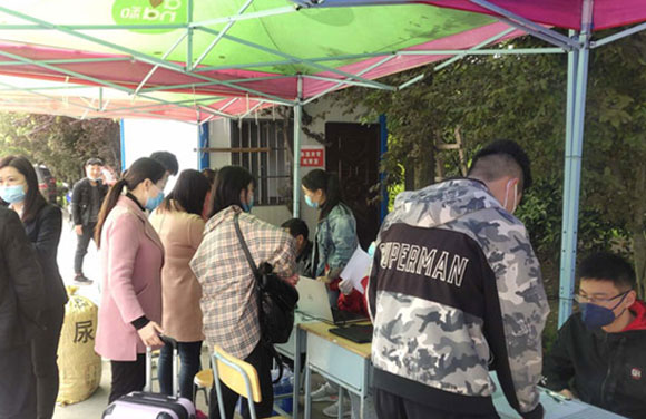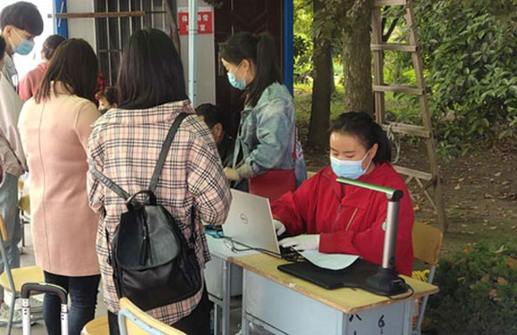 在新冠肺炎疫情防控期间,为了让新生顺利入学,学院全力以赴为新生及家长提供热心、真诚、周到的服务。西大门前入学的新生保持安全距离(相隔1米以上)有序地排队进行体温检测,体温正常者进行手部和行李消毒后入校。护卫组的老师提醒学生戴好口罩,人员之间间距大于1米,有序排队,体温检测组负责进行体温测量及记录。依法、科学、规范、有序的做好每一项防疫工作,为新生们创设“安全、健康、快乐”的校园环境。