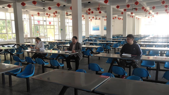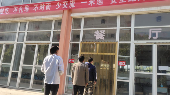 “学生”保持一米间距排队进入食堂,同时使用工作人员提供的免洗手液洗手。进入后,自觉到相应窗口排队,工作人员注意维持秩序并提醒“学生”注意间距,引导学生到相应位置就餐,同向而坐,一人一桌。直至开始用餐,才将口罩摘去,用餐完毕后迅速戴好口罩。倒餐盘时有序排队,保持一米间隔。食堂人员也要与服务对象保持1米以上安全距离。