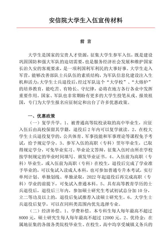 安信院 大学生入伍宣传材料