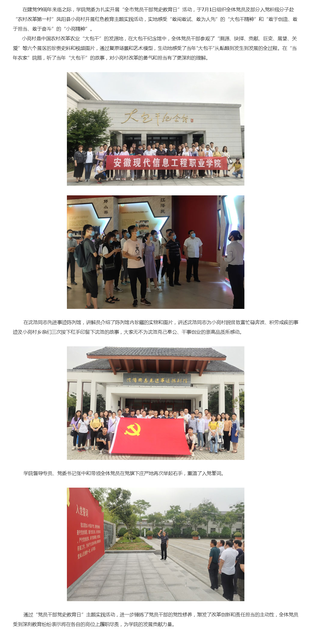 学院党委组织党员赴小岗村开展红色教育主题实践活动