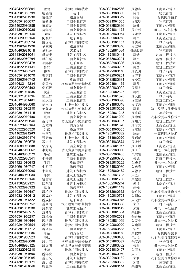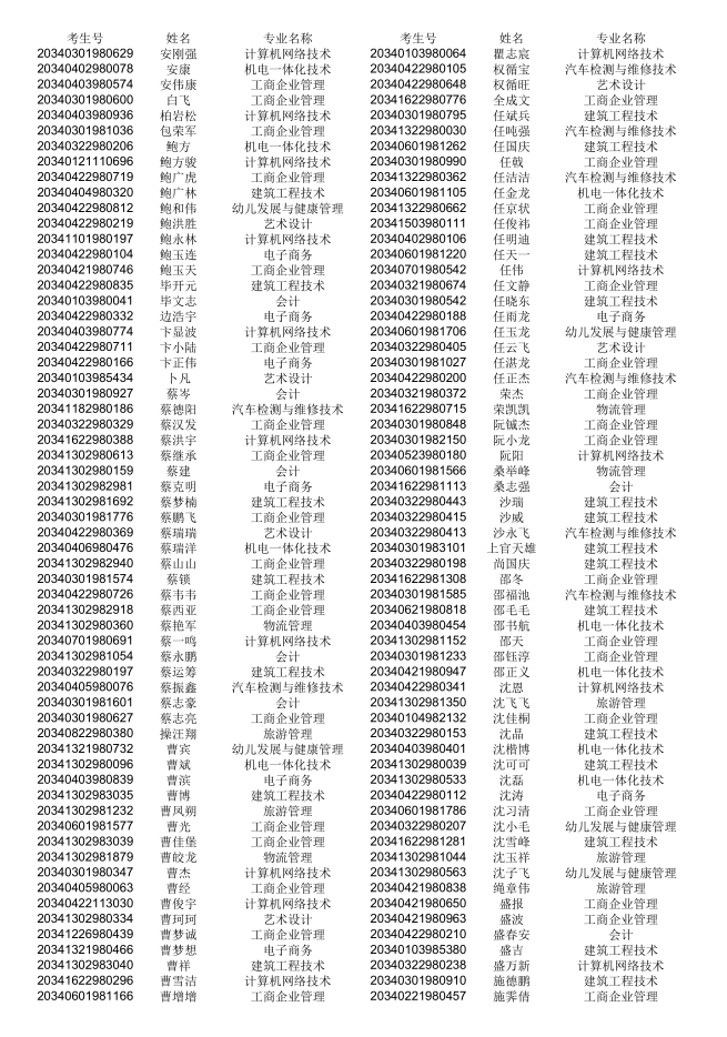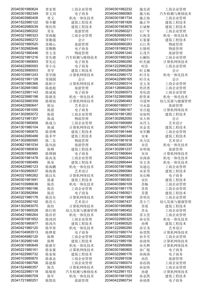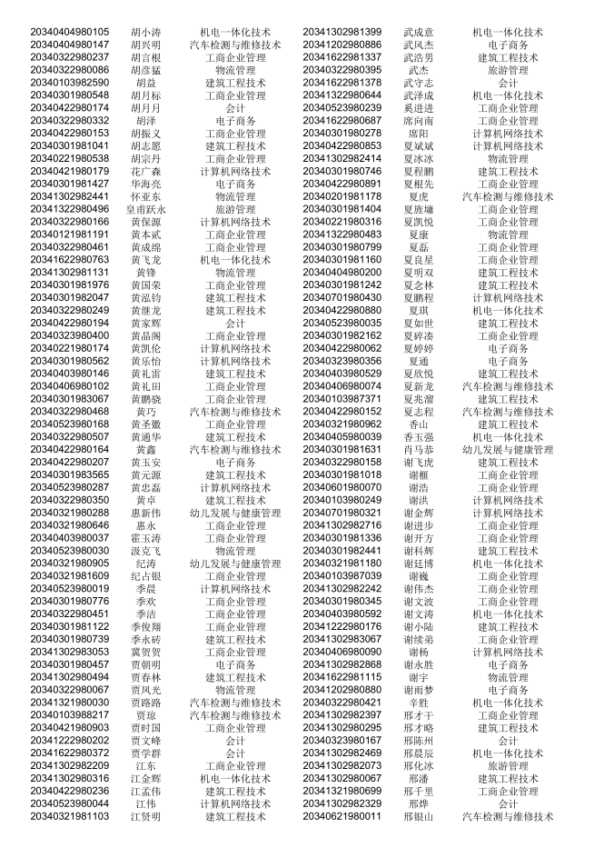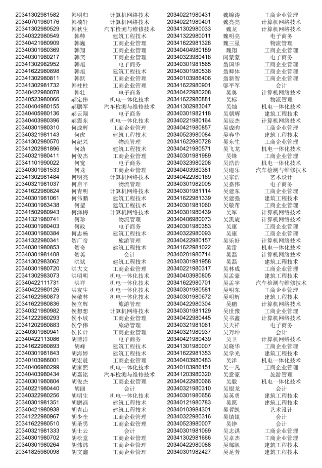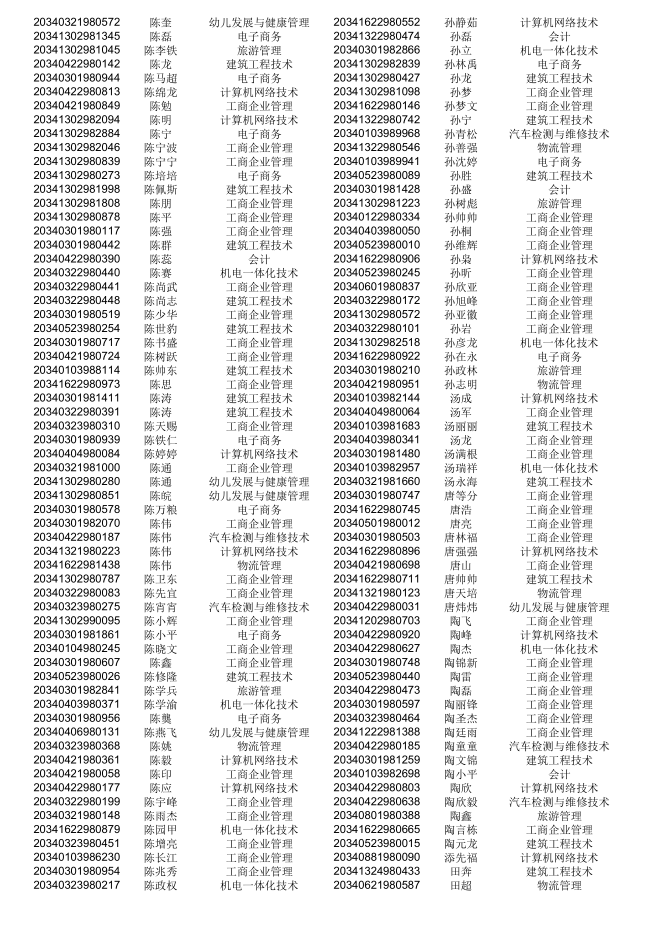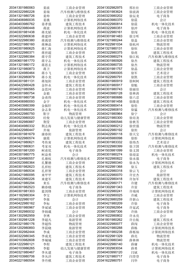 安徽现代信息工程职业学院2020年高职扩招录取名单公示