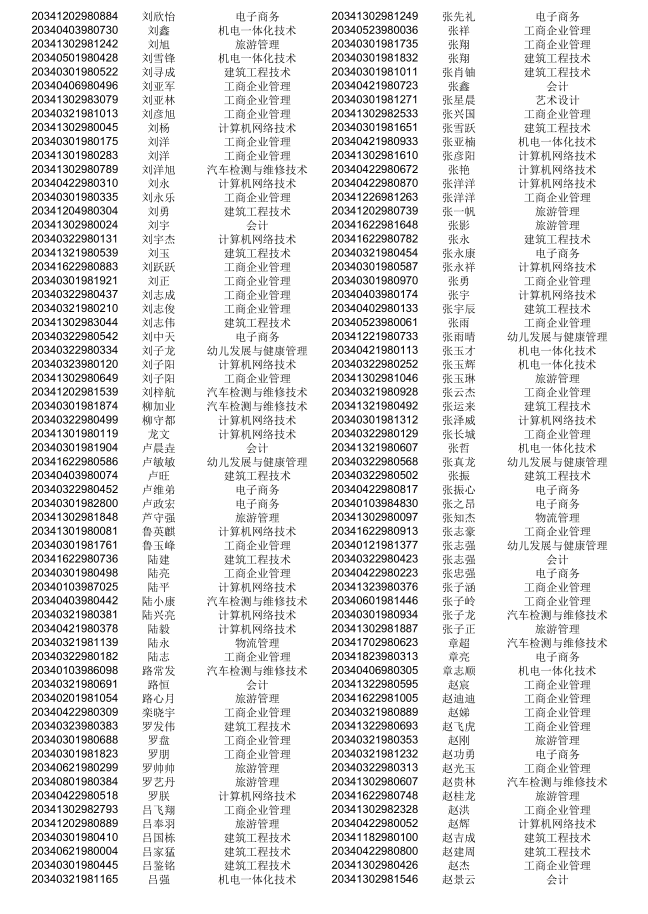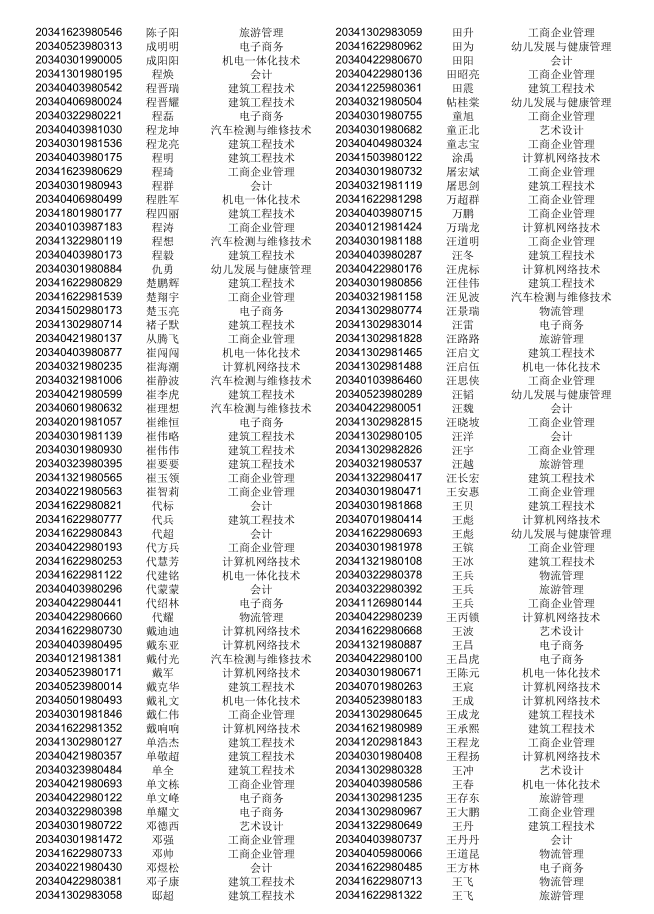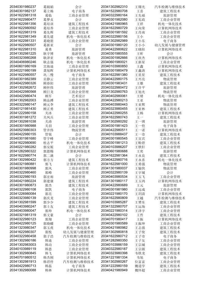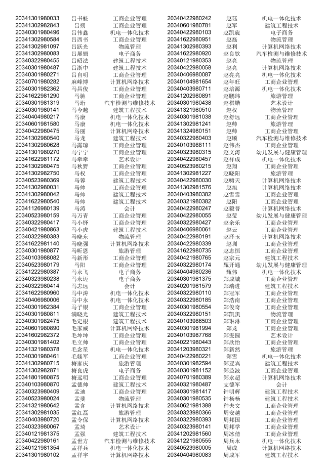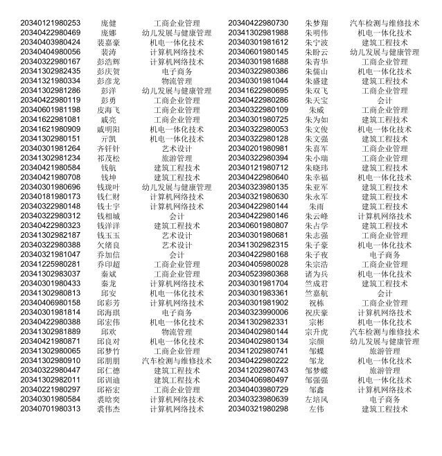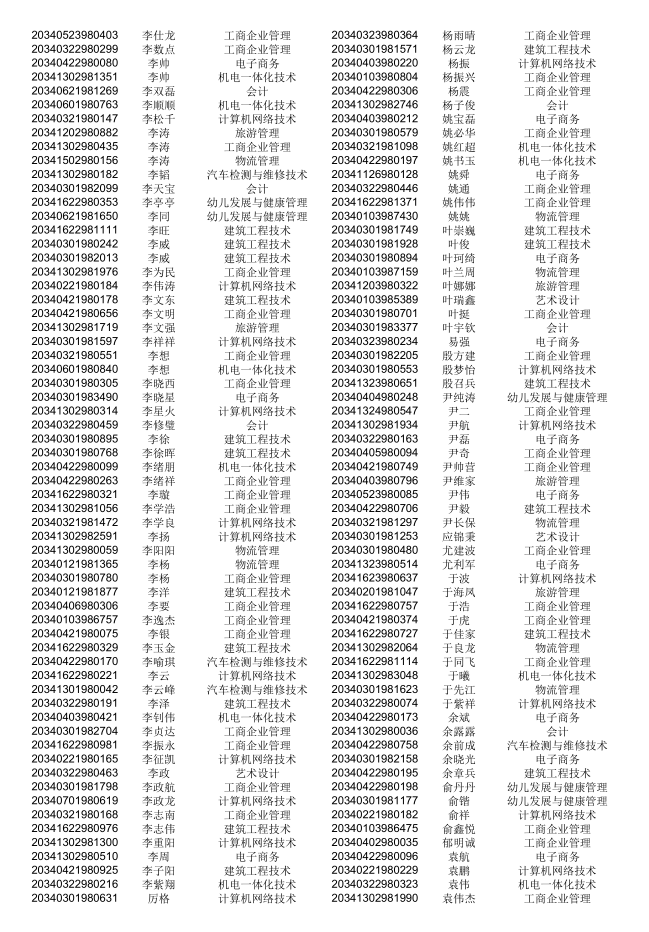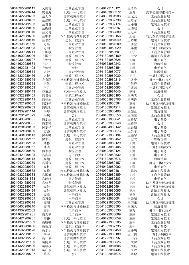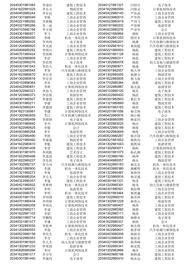 安徽现代信息工程职业学院2020年高职扩招录取名单公示