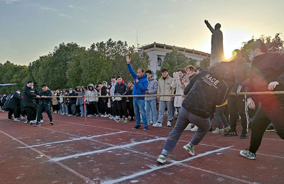 第一届校园文化艺术节拔河比赛于2020年12月15号在田径运动场举行。