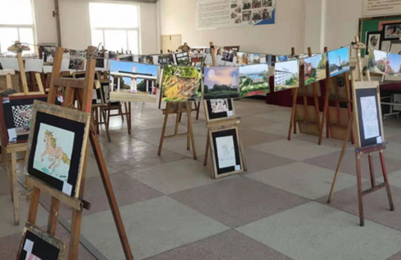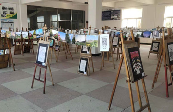在2021年元旦来临之际,第一届校园文化文化节绘画摄影赛在图书馆大厅举行。