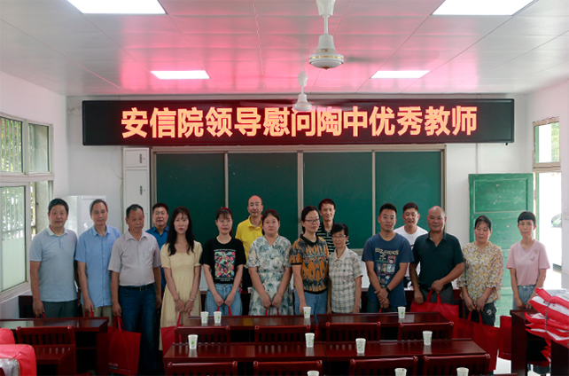 在第37个教师节到来前夕,院党委书记、督导专员翟骏,院长魏捷,学院副董事长、执行董事曹学华等院领导及学院相关部门人员前往寿县陶圩中学,亲切慰问陶圩中学的老师们,提前送去教师节的问候和祝福。