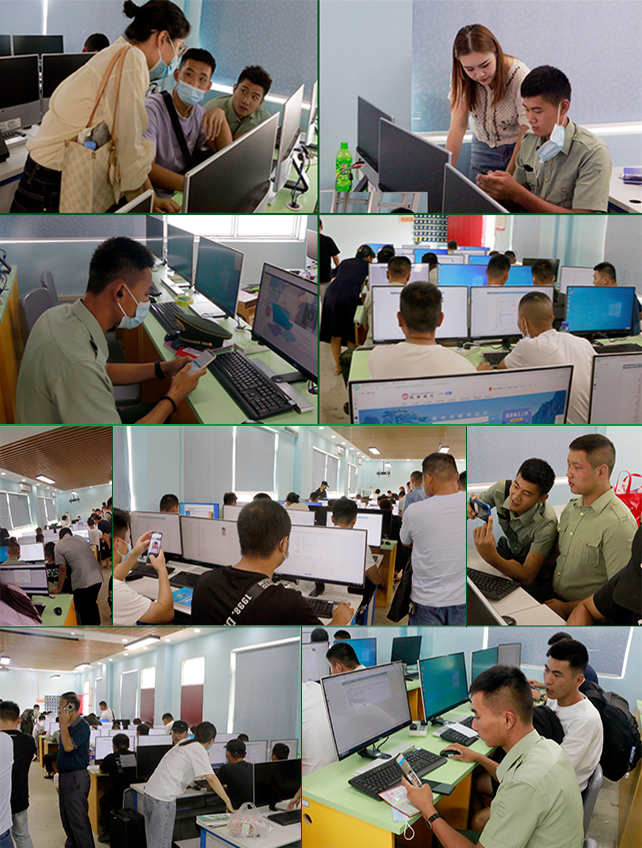 技能培训第一课结束后,想要进行学历提升的学生来到机房报名社会扩招。