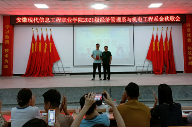9月27日下午,由学生会文艺部承办的经济管理系与机电工程系“金秋歌会”在学院多功能厅热烈举行,院领导曹学华及团委、工会及有关处室、系部负责人,机电经管系全体班主任和学生参加了活动。
