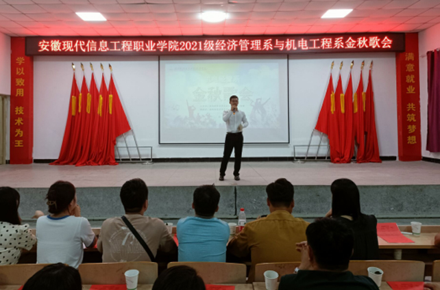 9月27日下午,由学生会文艺部承办的经济管理系与机电工程系“金秋歌会”在学院多功能厅热烈举行,院领导曹学华及团委、工会及有关处室、系部负责人,机电经管系全体班主任和学生参加了活动。