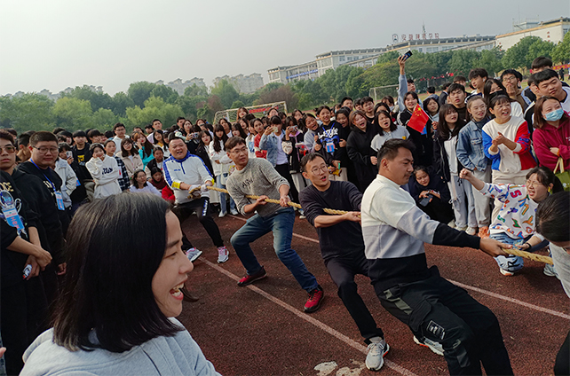 教职工也纷纷上场进行了一场别开生面的拔河比赛。