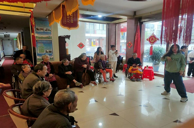 稍作休息后,学生们开始表演他们为敬老院的老人们精心准备的节目,唱红歌、跳舞、大合唱,各种各样的表演应有尽有,给老人们带来了欢乐与幸福。文艺节目表演过后,敬老院的老人们还饶有兴趣地为同学们讲述他们改革开放前后亲身的经历,让同学们深刻认识到今天的幸福生活来之不易。