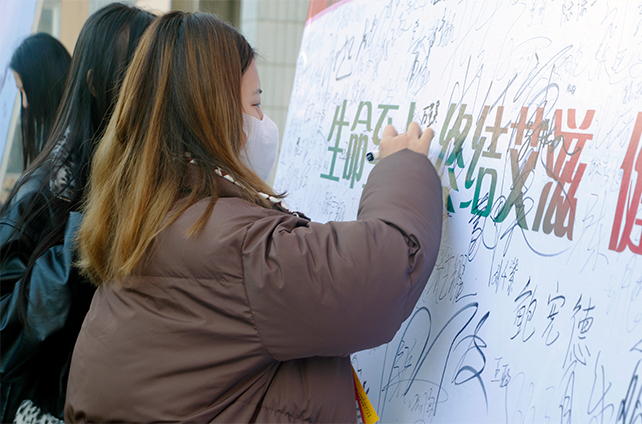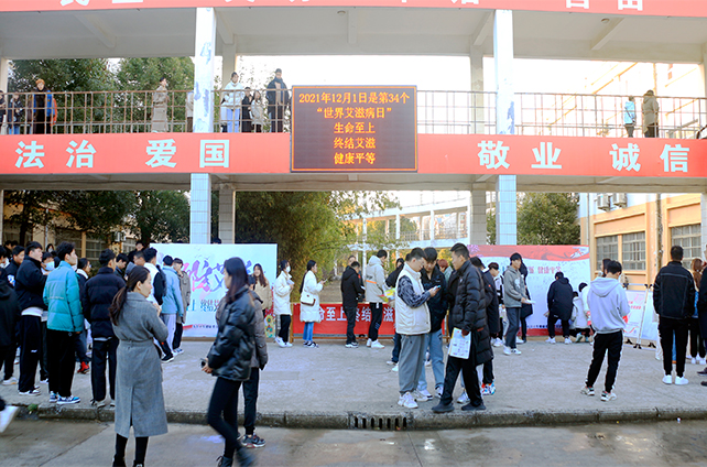 2021年12月1日是第34个“世界艾滋病日”,为进一步落实《教育部办公厅国家卫生健康委办公厅关于切实加强新时代学校预防艾滋病教育工作的通知》有关要求,推进“十四五”时期学校预防艾滋病教育工作的开展,遏制青年学生人群中艾滋病的传播和流行,促进青年学生身心健康,我院邀请县疾病防控中心在教学区进行预防艾滋病宣传,全体辅导员和学生共同参加。
