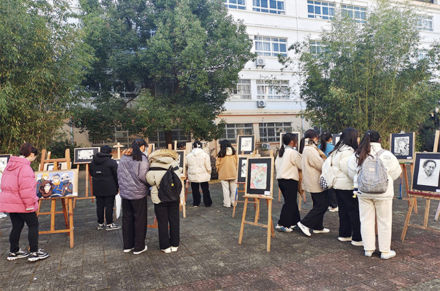 在2022年元旦来临之际,我院艺术建工系在五号教学楼前举办了学生绘画作品展。