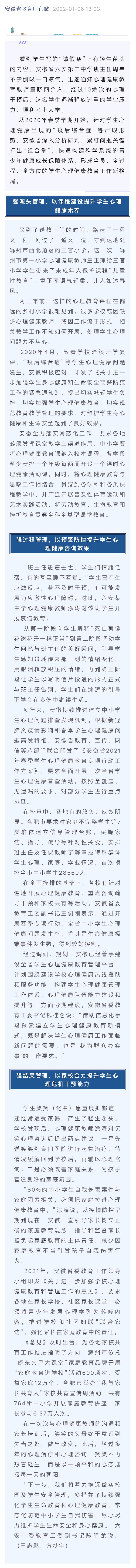 安徽强化源头、过程、结果管理,推进学生心理健康教育工作