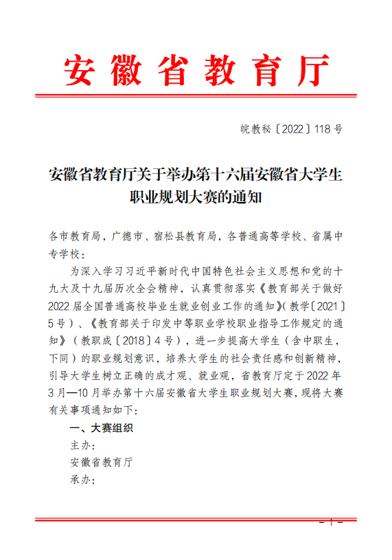 安徽省教育厅关于举办第十六届安徽省大学生 职业规划大赛的通知
