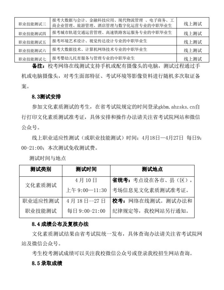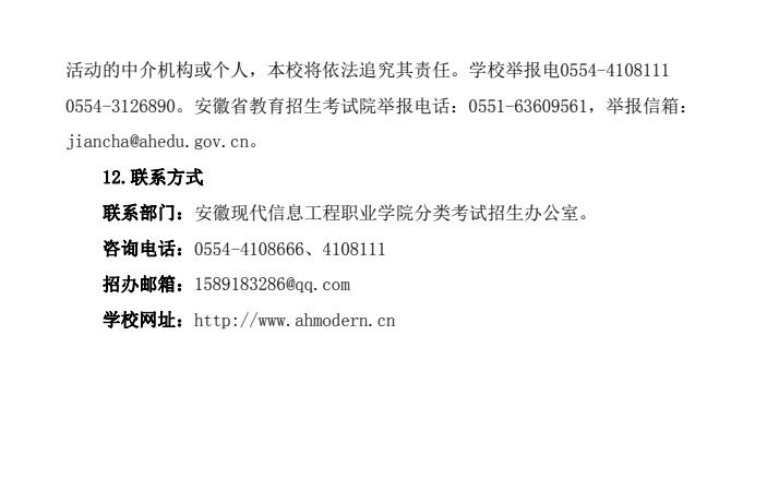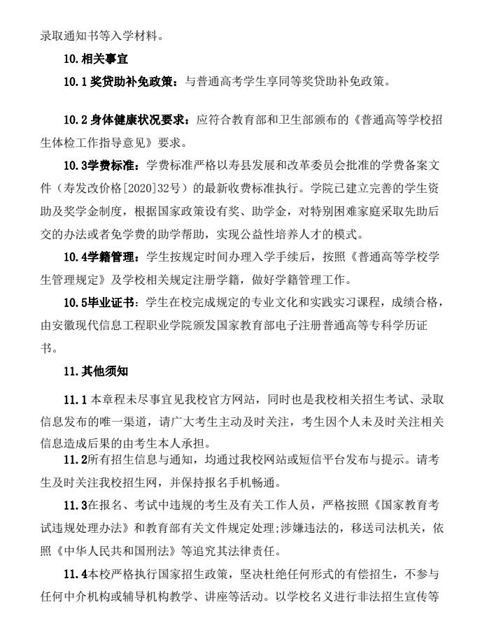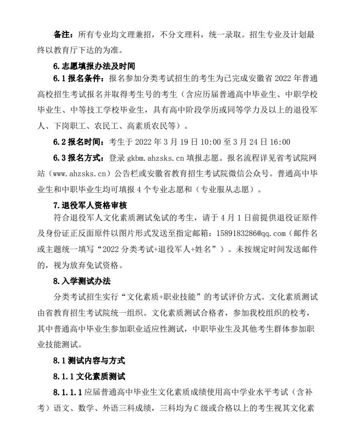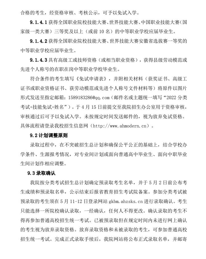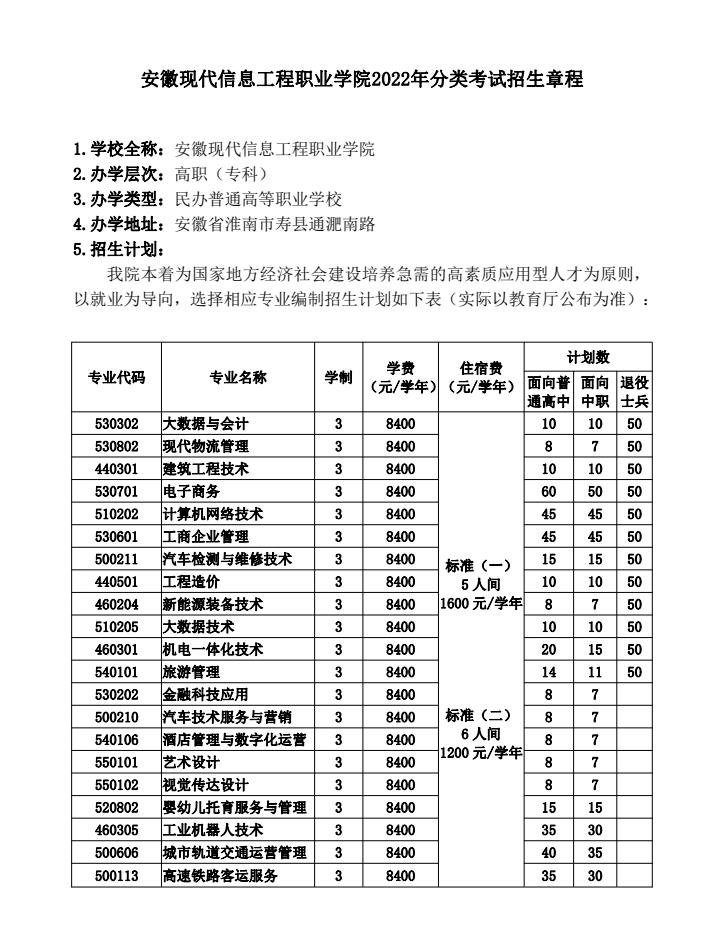 安徽现代信息工程职业学院2022年分类考试招生章程