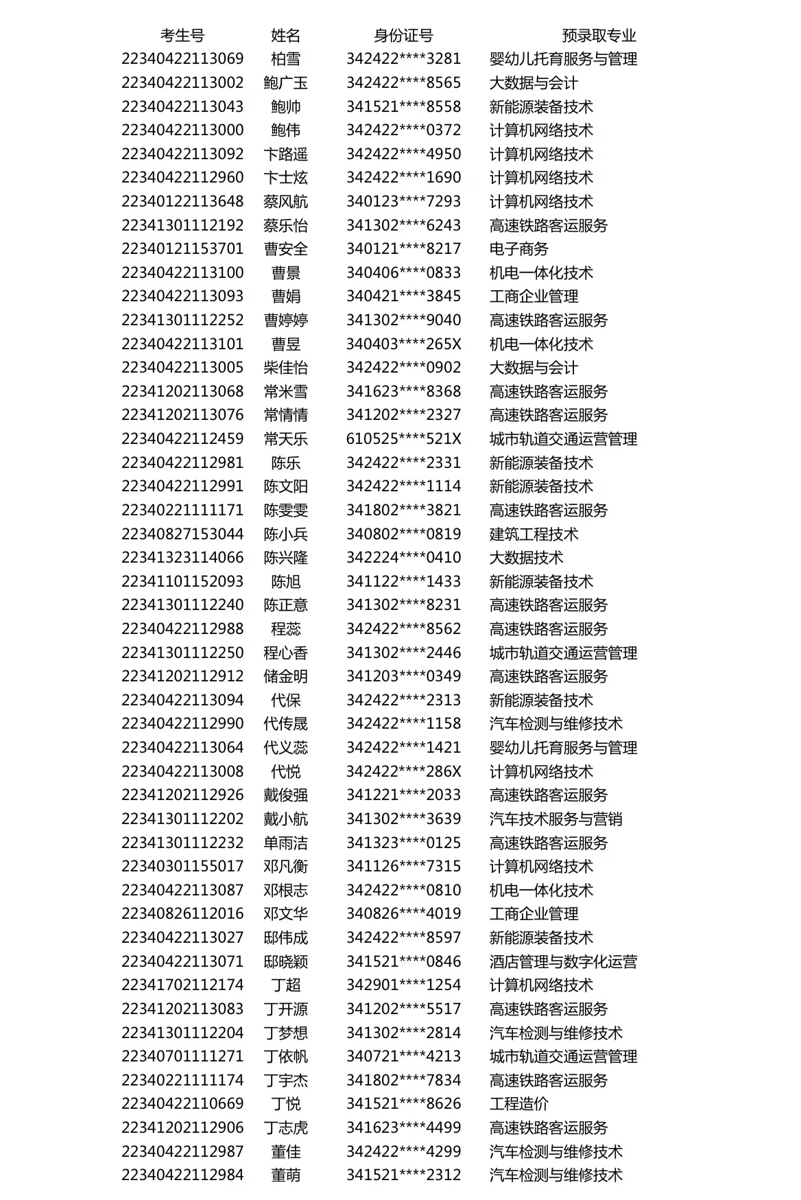 安徽现代信息工程职业学院2022年分类招生考试预录取名单公示