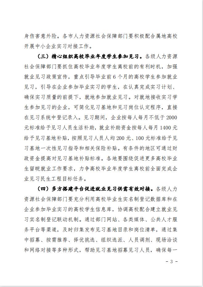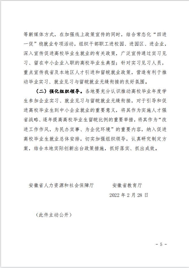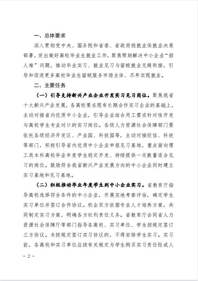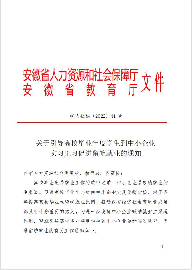 关于引导高校毕业年度学生到中小企业实习见习促进留皖就业的通知