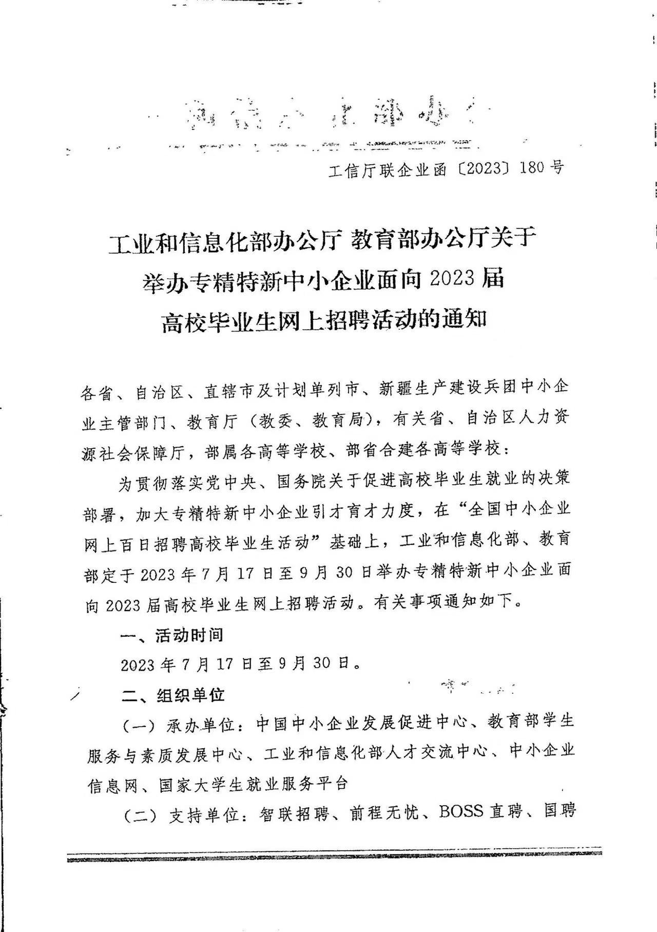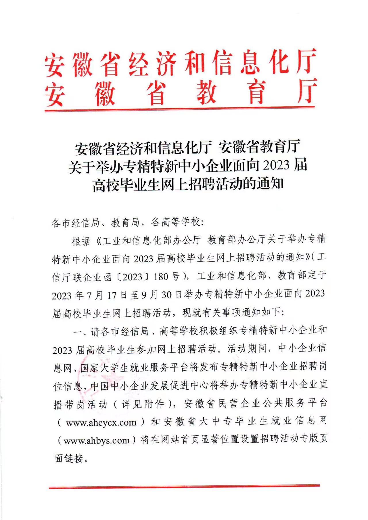 省经济和信息化厅 省教育厅关于举办专精特新中小企业面向2023届高校毕业生网上招聘活动的通知