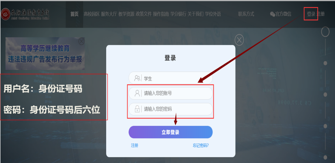 1、线上平台学习网址:安徽继续教育在线www.ahjxjy.cn