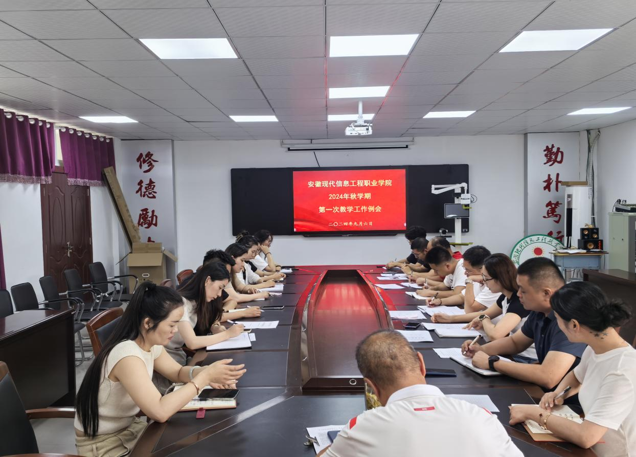 根据学院2024年秋学期教学工作安排,9月6日下午15:00在行政楼二楼会议室召开秋学期第一次教学工作例会。会议由教务处处长刘敏主持,党委副书记、院长肖成兵,副院长李阳以及各系部负责人参会。此次会议旨在对学期初教学开展情况作简要总结、并对教学工作做明确要求,确保新学期各项教学任务顺利推进。