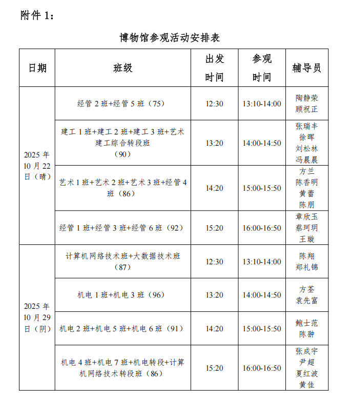 附件:1.博物馆参观活动安排表