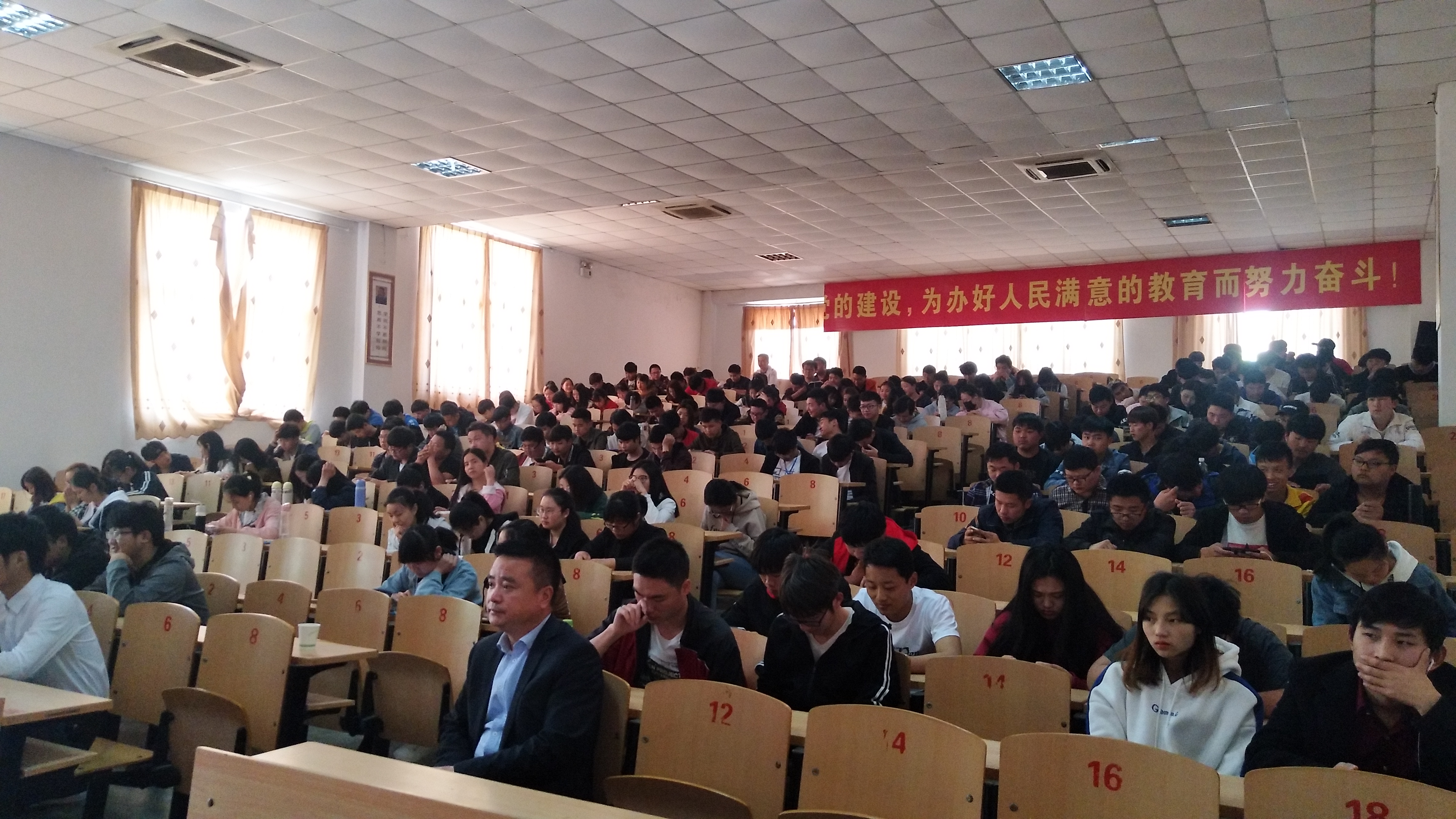 为深入学习宣传贯彻十九大精神,为学生职业规划提供帮助和指导。2018年4月16日下午4:20,淮南师范学院就业创业工作处处长罗群以《职为成长——谈生涯规划与职场适应》为题在多功能报告厅为我院大一大二学生作专题讲座。团委、学生会、四系班主任及学生200余人参加讲座,党委副书记杜玉萍主持讲座。
