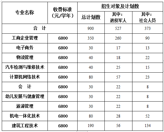 五、招生专业及计划:2019年高职扩招具体分专业招生计划详见下表: