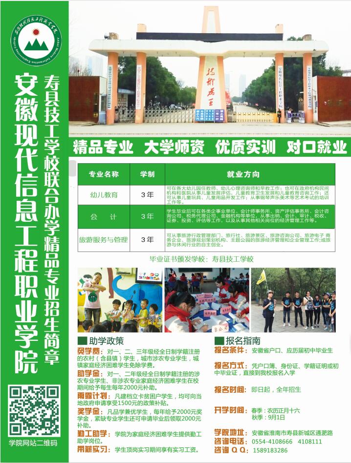 安徽现代信息工程职业学院2019年初中起点五年制大专招生简章