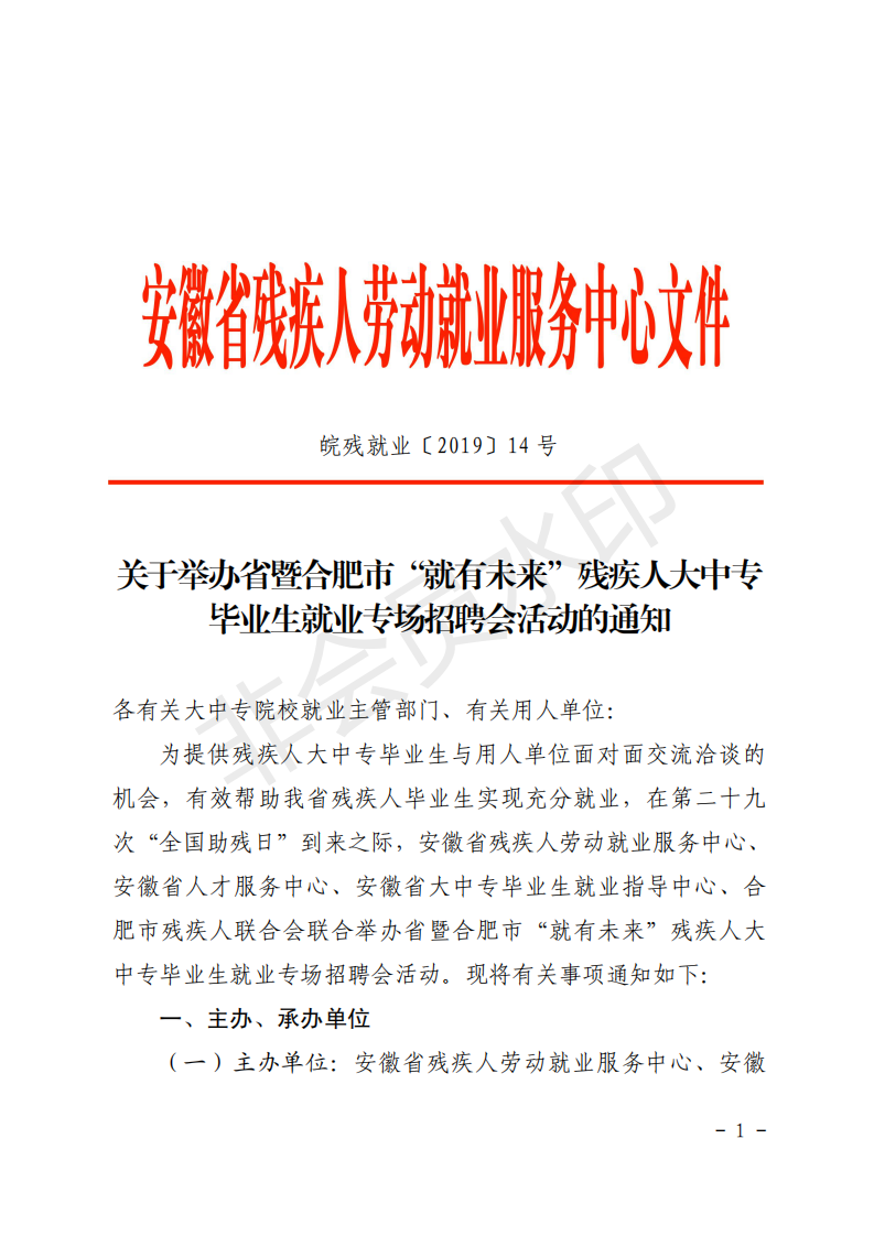 关于举办省暨合肥市就有未来残疾人大中专毕业生就业专场招聘会的通知