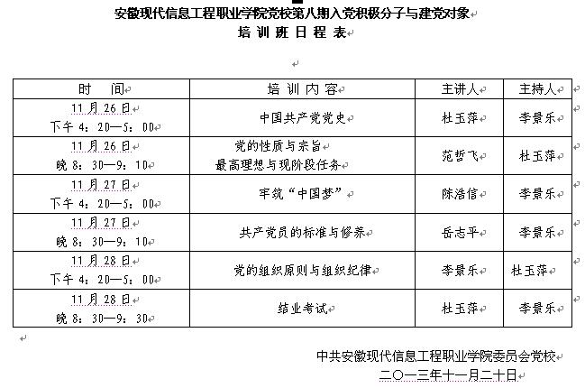 附:安徽现代信息工程职业学院党校第五期建党对象培训班日程表