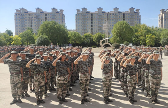 9月8日上午8点,安徽现代信息工程职业学院2019级新生军训会操表演暨总结表彰大会在行政办公楼前隆重举行。学院董党政领导、相关处室负责人、淮南军分区参谋、执教教官及全体参训新生参加了会议。副院长李景乐主持了闭幕仪式。