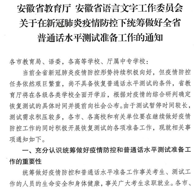关于在新冠肺炎疫情防控下统筹做好全省 普通话水平测试准备工作的通知