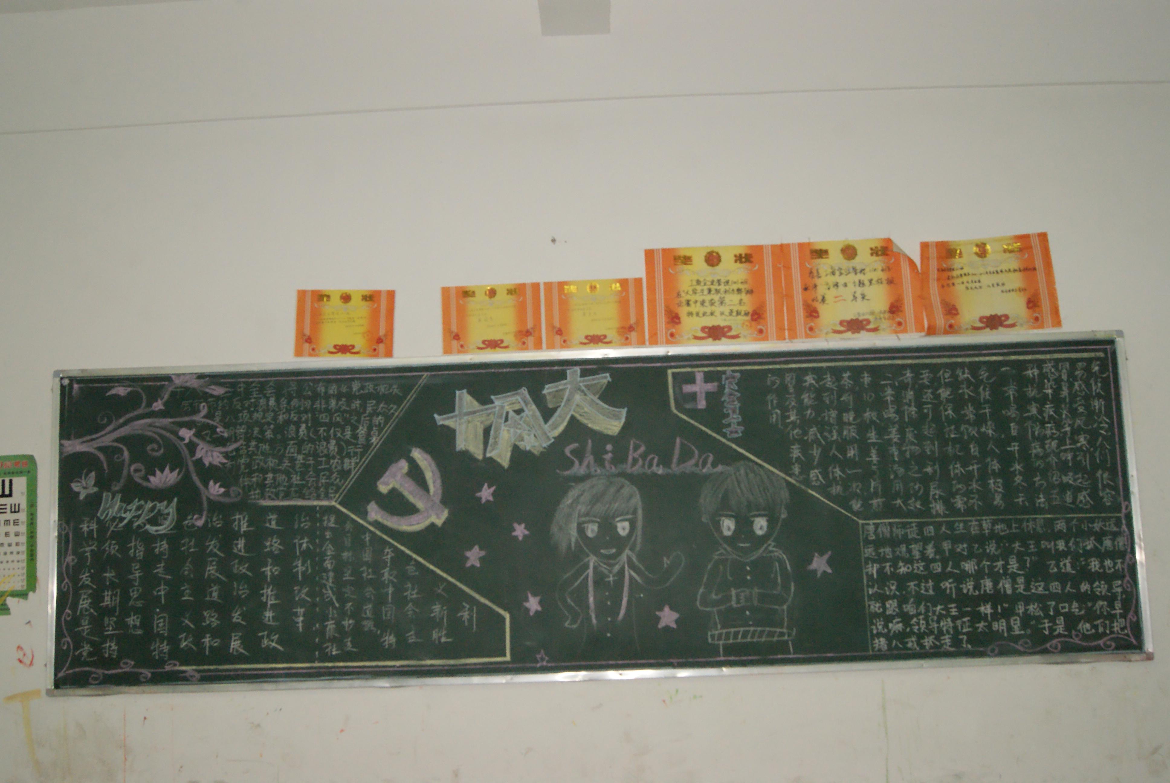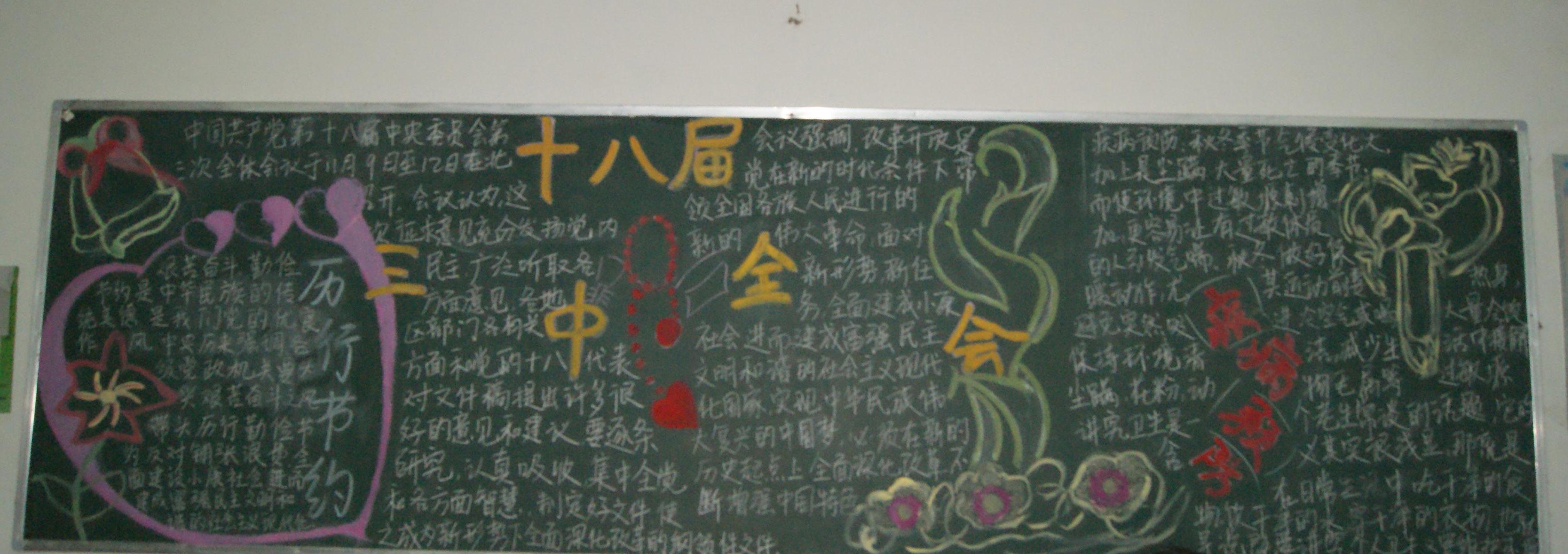 为了弘扬优秀民族精神,传颂华夏文明千古名转,增强同学们的爱国意识,继承党的十八大精神。经济管理系举行了以“喜迎十八大三中全会召开”为主题的黑板报评比活动。