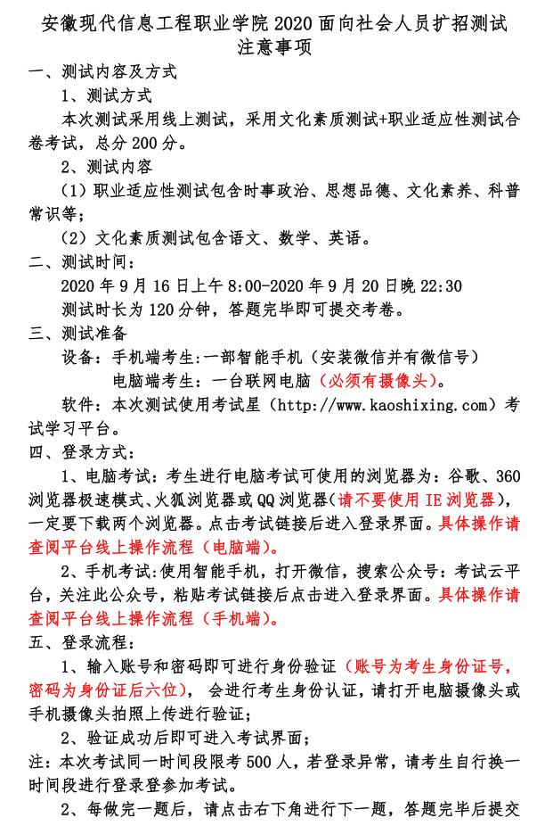 安徽现代信息工程职业学院2020面向社会人员扩招考试平台线上操作流程(电脑)