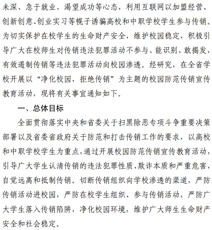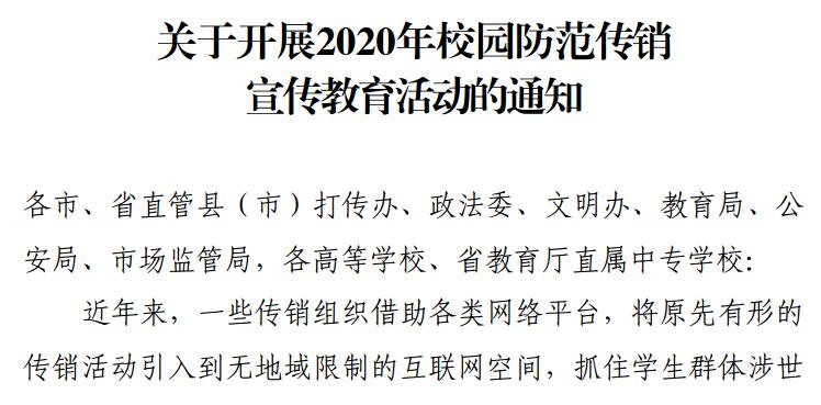 关于开展2020年校园防范传销 宣传教育活动的通知