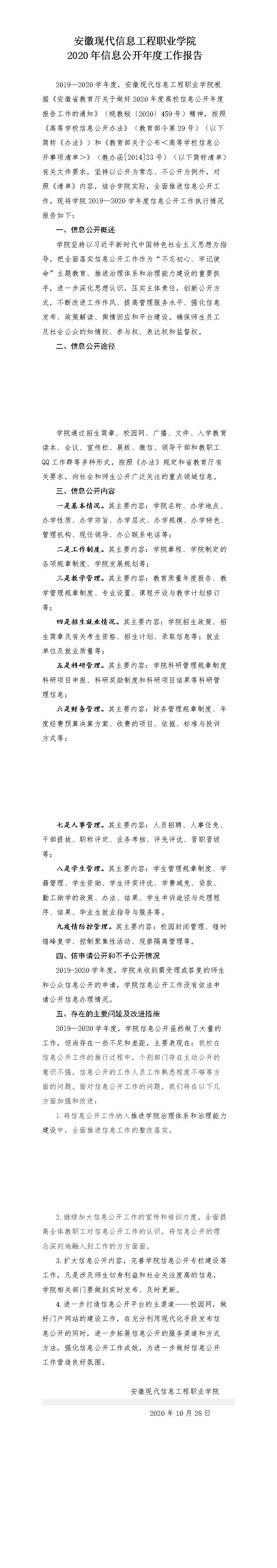 安徽现代信息工程职业学院 2020年信息公开年度工作报告