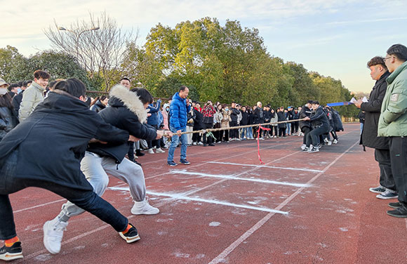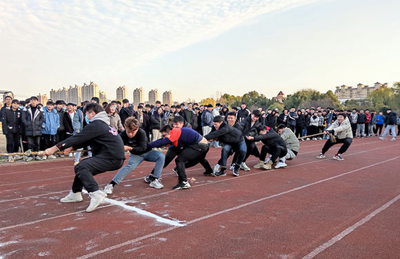 第一届校园文化艺术节拔河比赛于2020年12月15号在田径运动场举行。