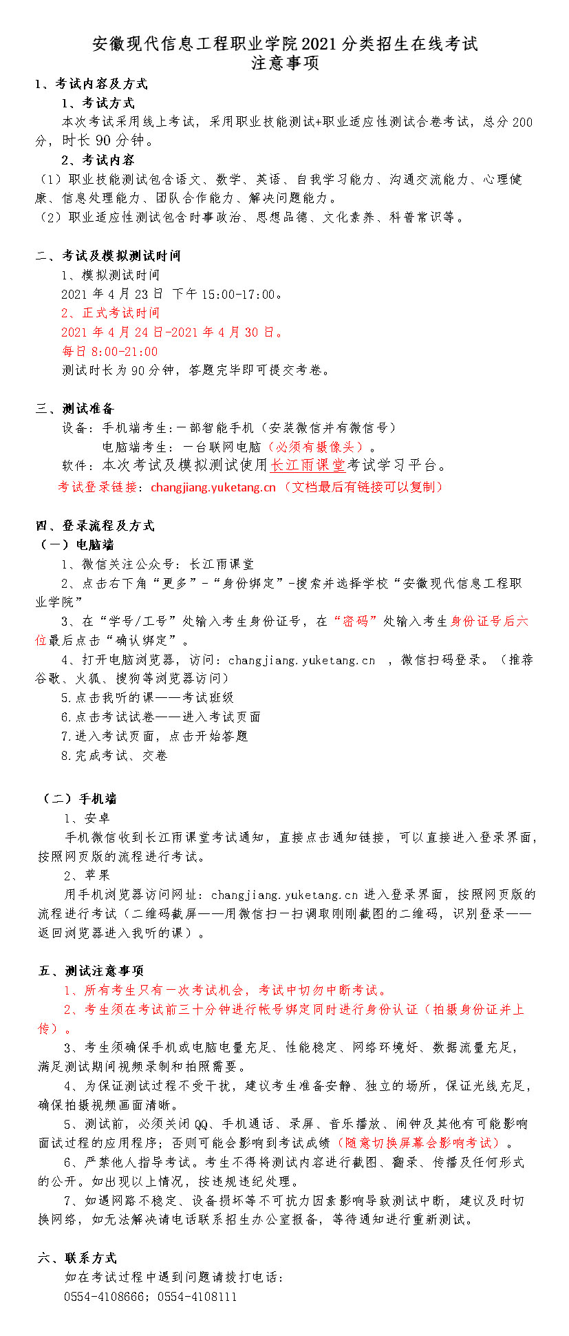 安徽现代信息工程职业学院2021分类招生在线考试操作指南(点击下载)