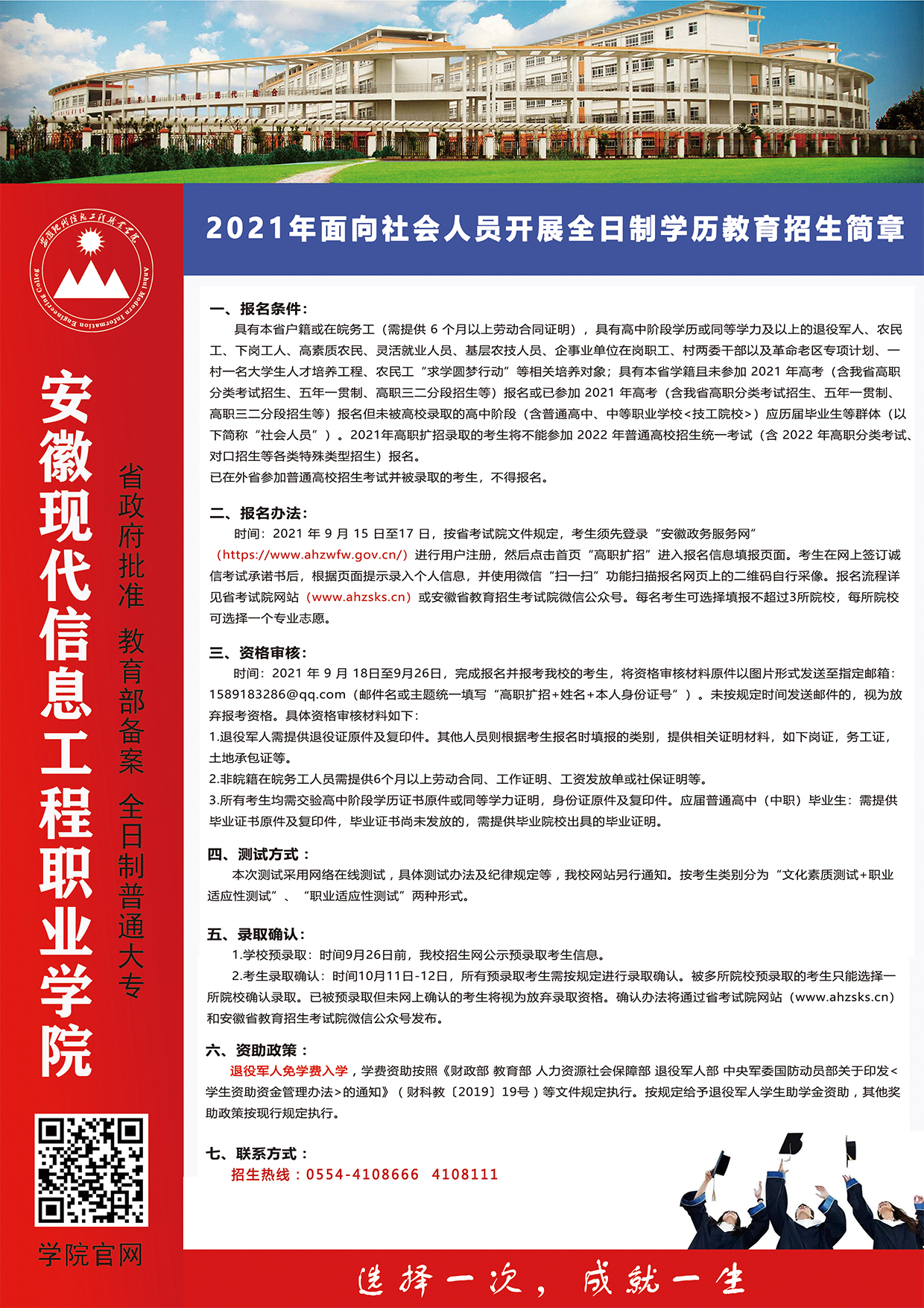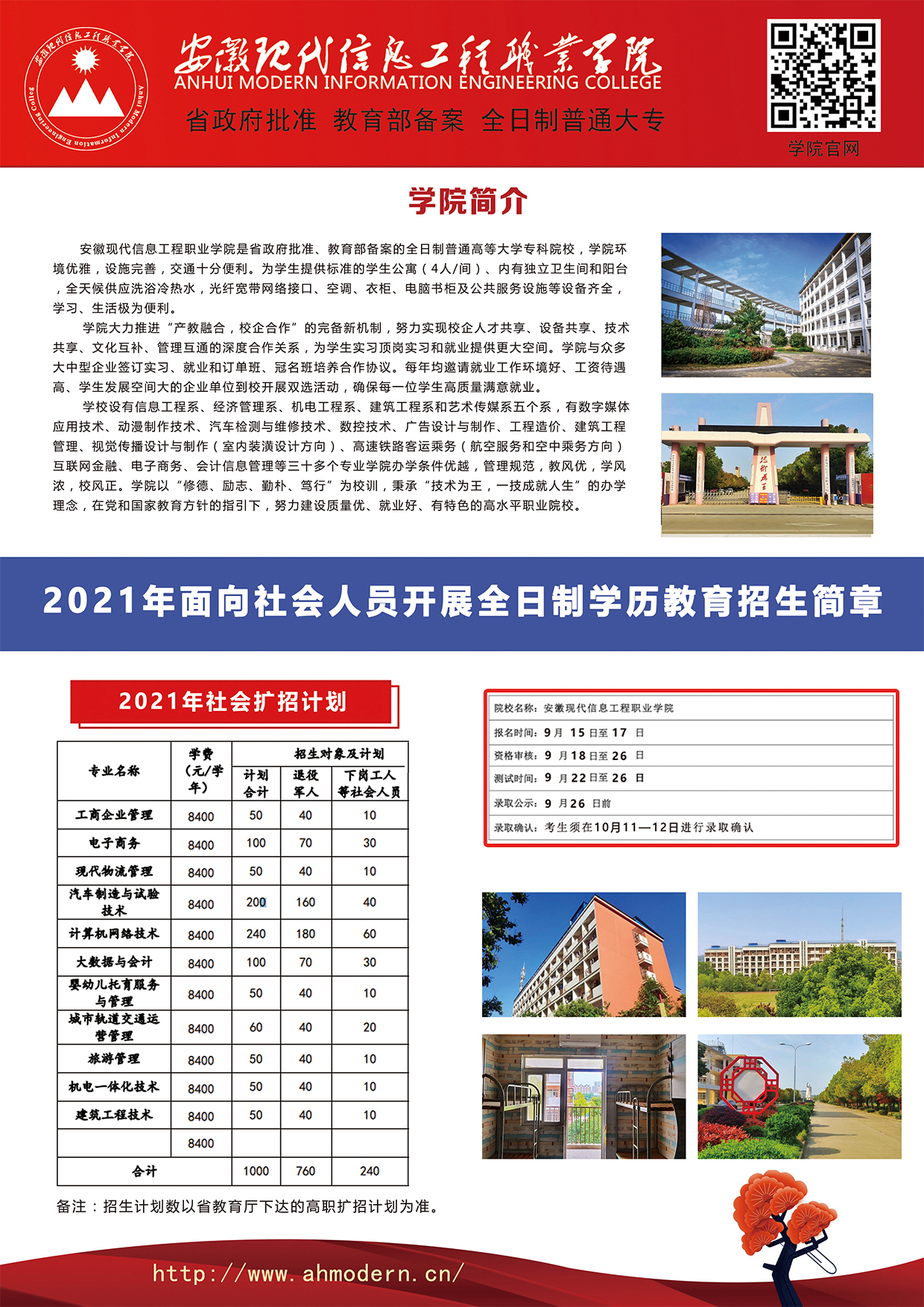 安徽现代信息工程职业学院2021年成人高等教育招生简章