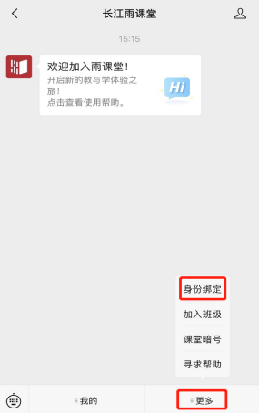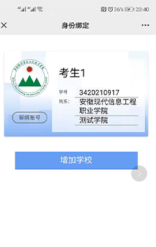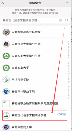2、点击右下角“更多”-“身份绑定”-搜索并选择学校“安徽现代信息工程职业学院”