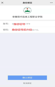 3、在“学号/工号”处输入考生身份证号,在“密码”处输入考生身份证号后六位最后点击“确认绑定”。