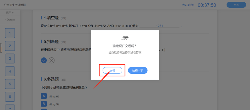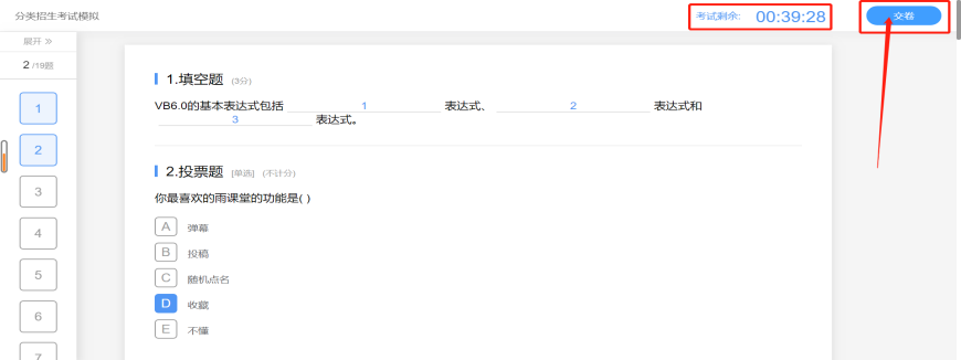 5、考试系统将全程记录考试全过程,直至考生交卷或考试结束。